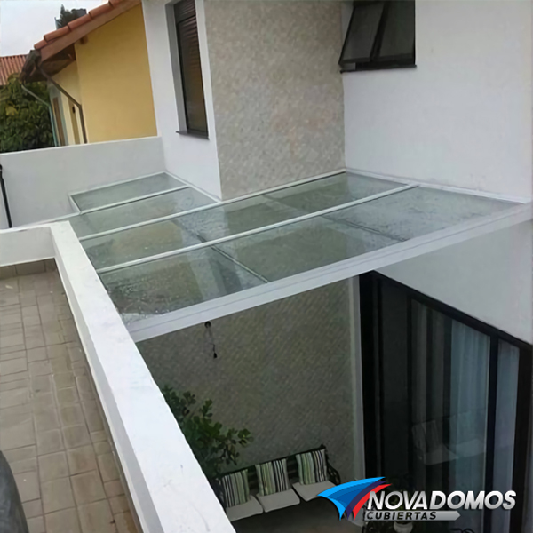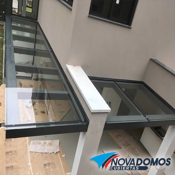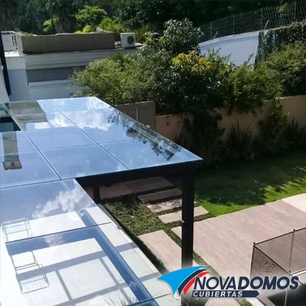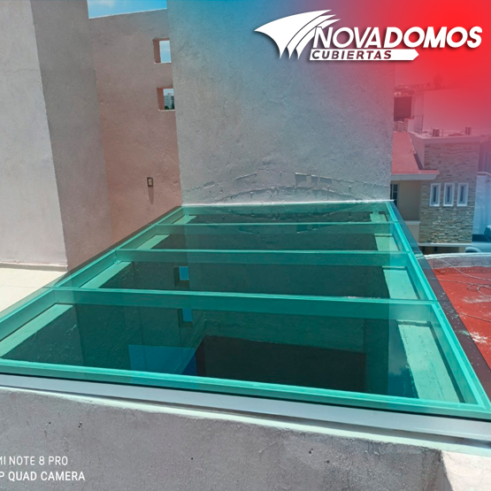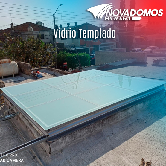 Ofrecemos el servicio de suministro e instalación de cubiertas de Vidrio templado este tipo de cubiertas es de lo más estético para su uso en áreas a la vista en donde se desee cubrir, además se puede mejorar la funcionalidad del vidrio con la aplicación de películas para el control solar, privacidad y seguridad. En Novadomos tenemos amplia experiencia con el vidrio templado diseñando y desarrollando proyectos desde cero. Es decir, desde la planeación en proyecto ejecutivo, planos, renders, desglose de materiales y desarrollo en la obra. El vidrio templado es el producto que se obtiene al someter un vidrio a un proceso térmico para conseguir que sus propiedades mecánicas mejoren. El vidrio obtenido de este proceso térmico tiene una resistencia cinco veces mayor que la del vidrio original. Lo que lo convierte en el producto ideal para su uso en domos y cubiertas. Es un vidrio seguro ya que de estrellarse este estalla en pedazos pequeños que resultan inofensivos al corte.
