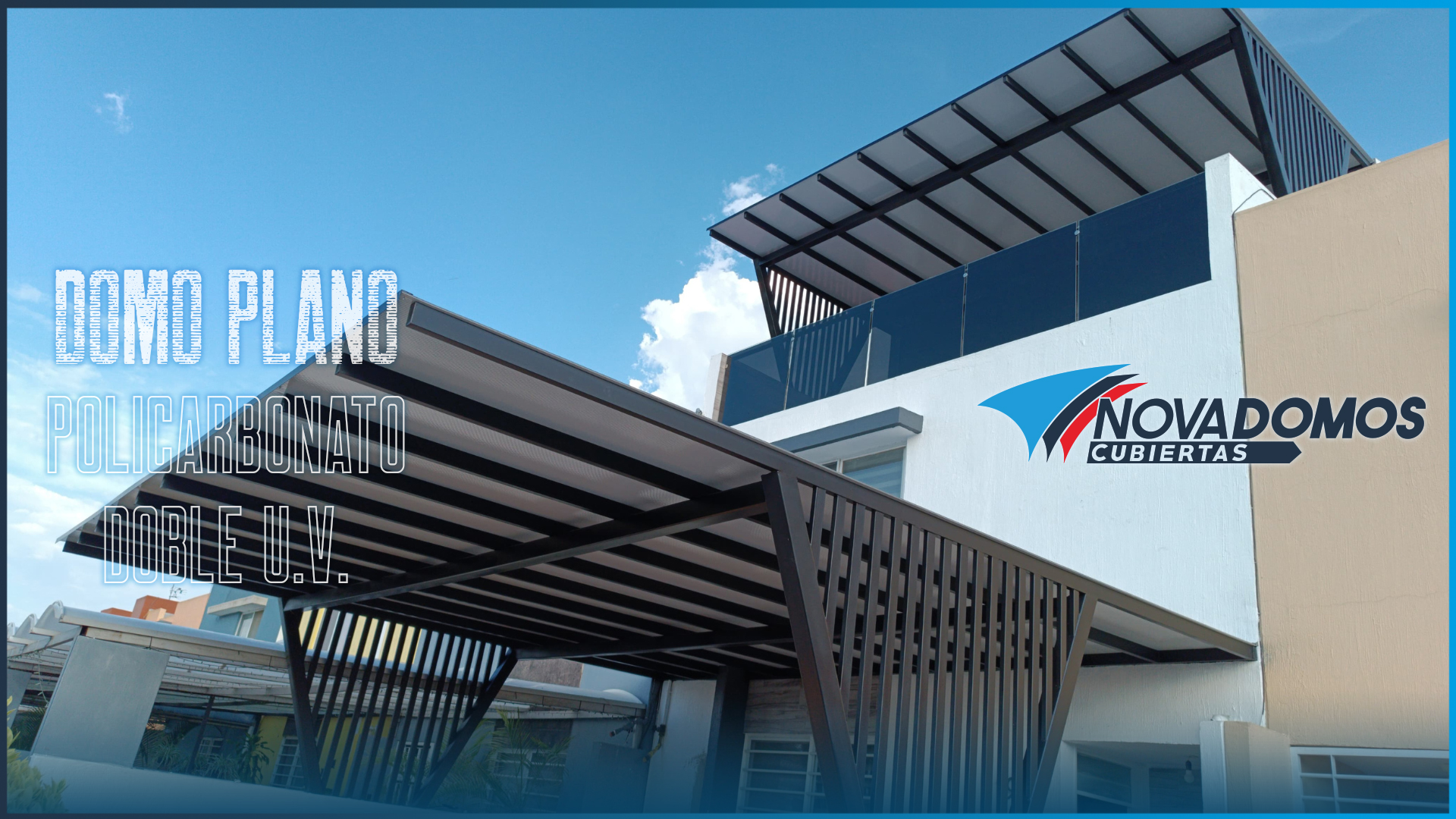 Domos de Policarbonato celular, estructurados o sobre canales de aluminio, los domos de policarbonato pueden ser tipo plano, tipo arco cañón, o tipo rolado . Los domos de policarbonato celular también pueden ser abatibles o corredizos en parte o su totalidad. El policarbonato celular es un producto rígido y ligero que lo convierte en el material ideal para realizar domos, en Novadomos utilizamos policarbonato celular de la mejor calidad solo marcas líderes del mercado Lexan, Poligal, PolNova, Etc. Para poder garantizar nuestros trabajos hasta por 10 años.
